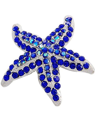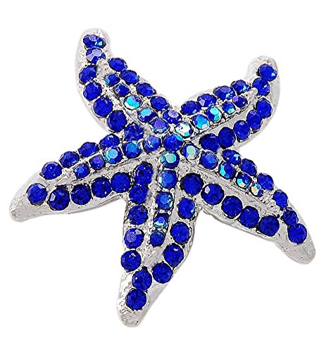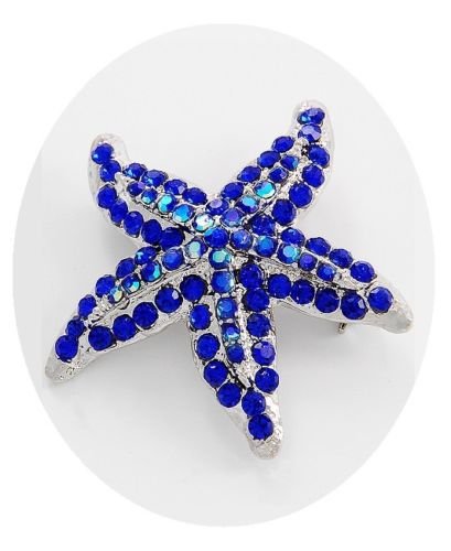 -. Feature : Blue Starfish Beach Wedding Pin Brooch / 1 3/4" x 1 3/4" / Sparkling Austrian Crystal Brooch Pin Hair Jewelry / Silver Plated / S23 BB348108 -000350 BOX 70