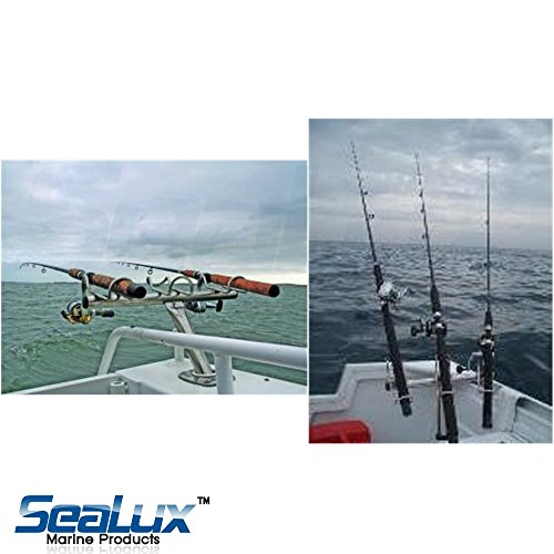 - Feature : SeaLux 3 in 1 port side storage rack turns 1 port side rod holder into 3 and holds your rods at a great fishing angle. / Features Mirror finish 316 stainless steel. T-Bar Solid construction. Tapered spacer for secure fit. Fits into standard rod holder. / Ring loops tilt lock, allows you to spread your rigs for trolling or pulling / Fits into any standard gunnel mount, Rod holder offers anglers the flexibility and ease to maneuver their rod in any direction / Mount pole is 17" long & 1-3/8" diameter. Base has a molded cross section to eliminate swivel within the boat