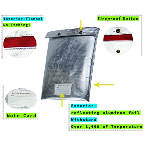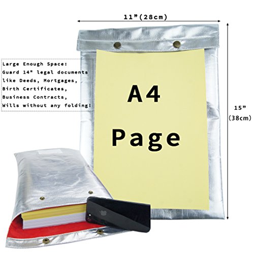 15"x11" Fireproof Safe Waterproof bag with Flannel Material, Protect hand No More Itching, Withstand Over 1000°F in home and office Protect cash money stamp letter document and Valuable things