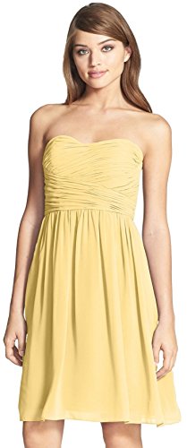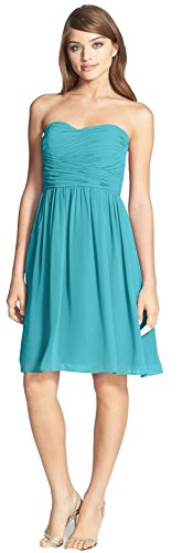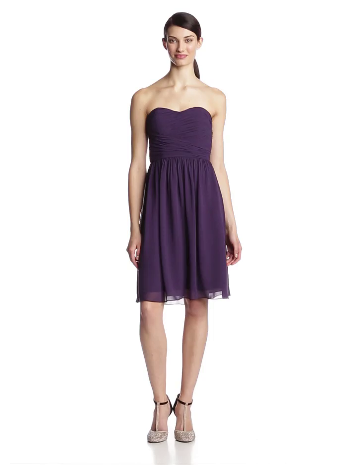 The ruched bodice is a flattering detail on this flowy sweetheart chiffon dress