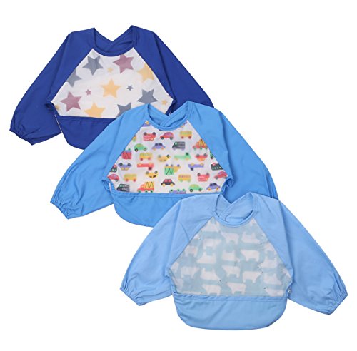 -. Feature : ・袖汚れの心配にピッタリの長袖エプロンです。 / ・保育園や幼稚園、お家での食事やお絵かきなどに必須アイテム!! / ・対象年齢:6ヶ月から2歳程度(Sサイズ) / ・離乳食始めのお子様くらいから2歳くらいまでのお子様にお勧めします。つかみ食べやスプーンの練習にも最適です。 / 【サイズ】着丈 33cm, バスト 31cm, 袖丈 34cm  【素材】 綿 ・ EVA