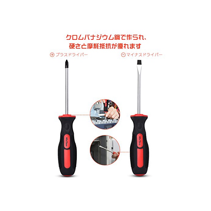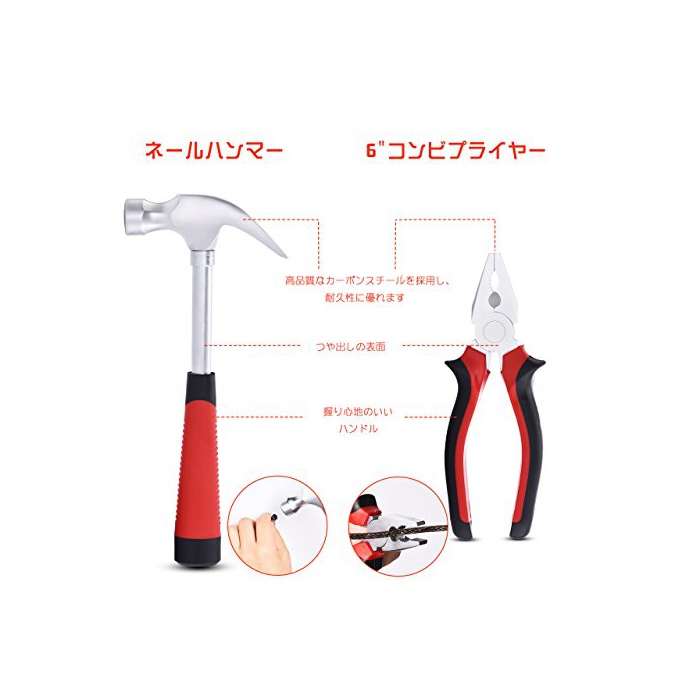 【신뢰 할 수 있는 품질】예를 들면 nail 해머는 카본 스틸을 채용하고, 힘이나 내구성보다 뛰어납니다.마이너스 드라이버와 드라이버 핸들은 크롬 Vanadium강에 만들어지고, 경도와 마모 저항이 증강되었습니다.