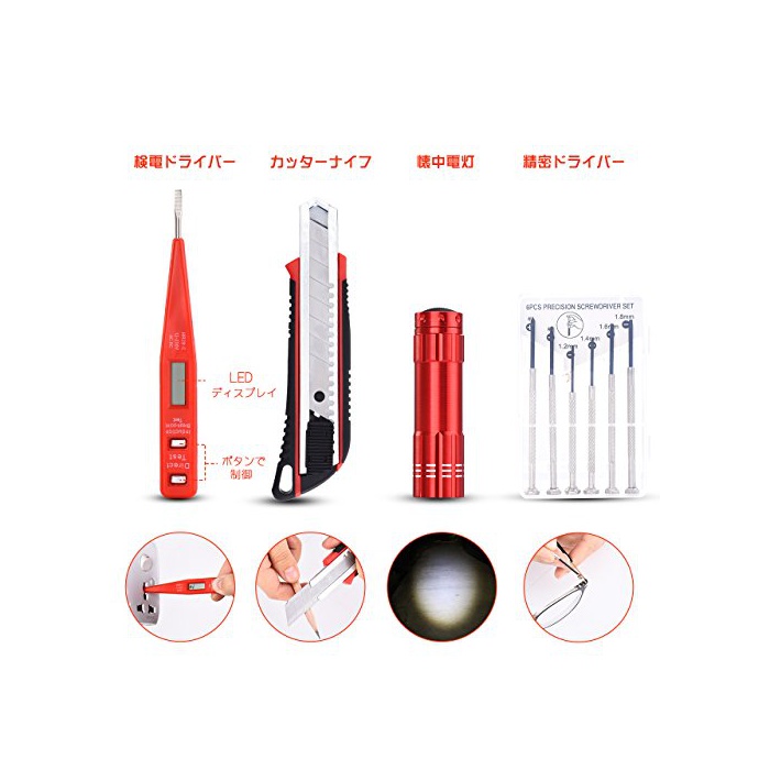 원본상품명:Patech ホムツルセット 作業工具セット 作業道具セット 大工住まいのメンテナンス用 120組(レッド)