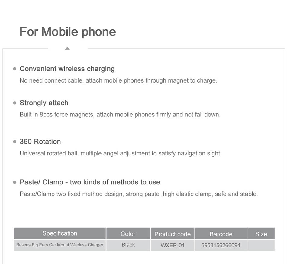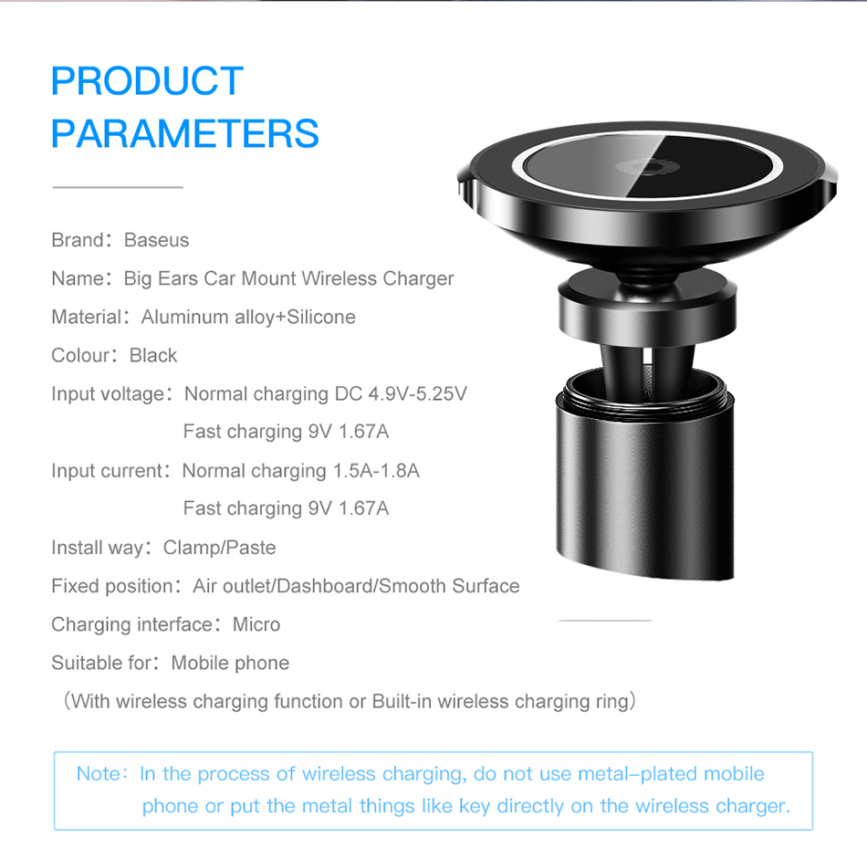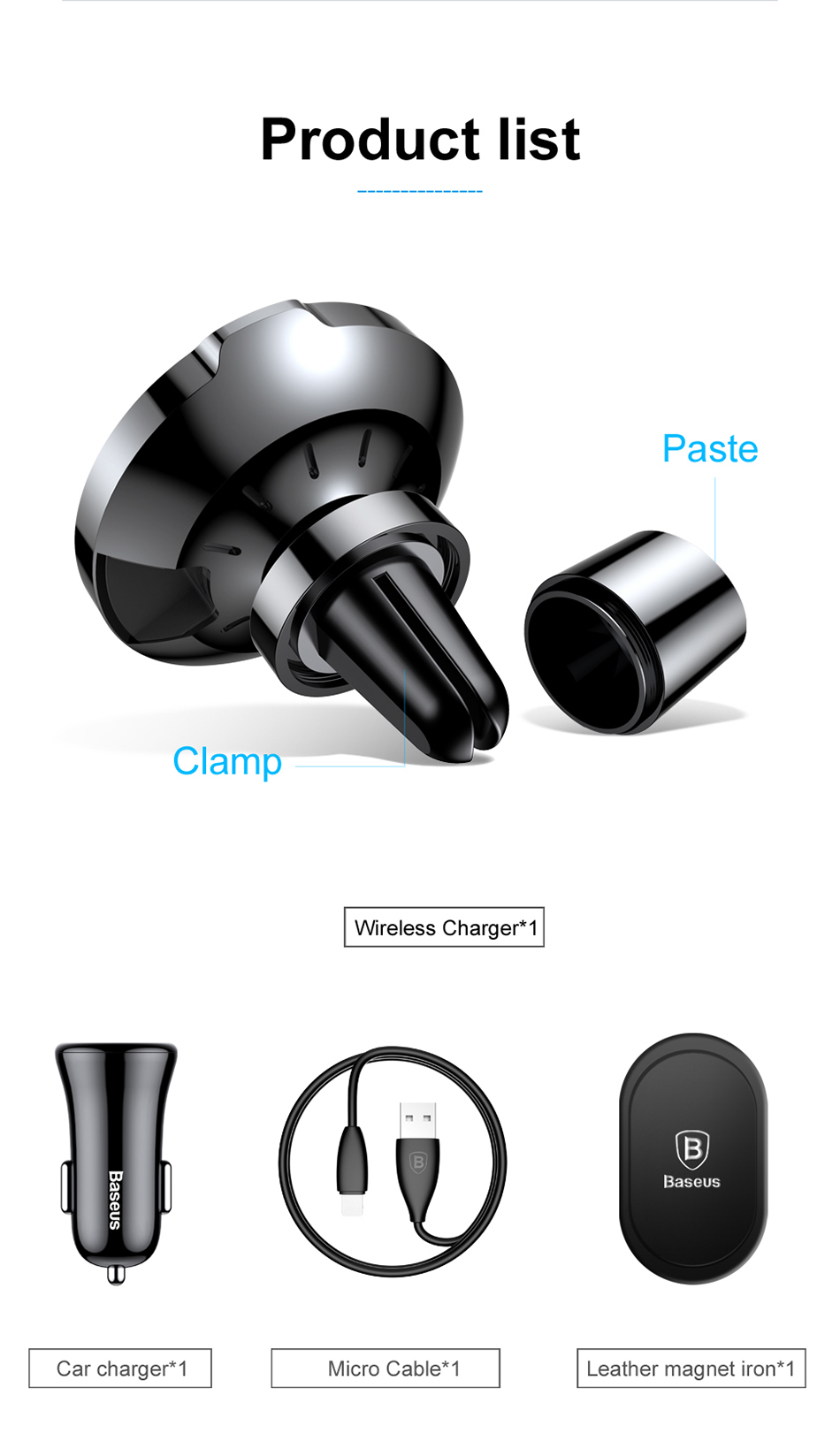 - Buy one get four:Car Holder + Wireless Charger + Car Charger + Micro USB Cable
