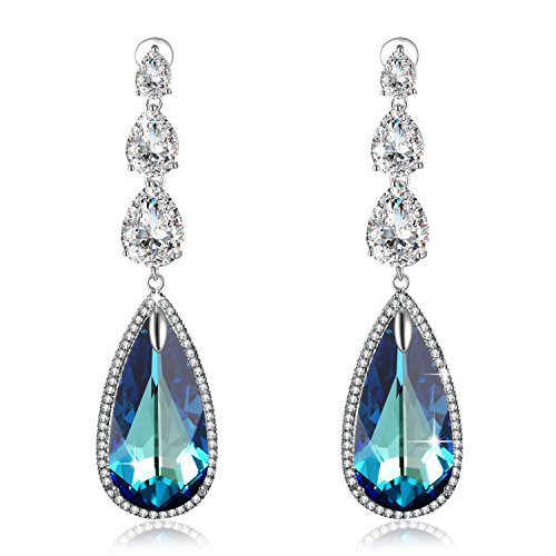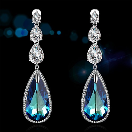 -. Title : Valentines Day Gifts PLATO H Ocean Blue Heart Teardrop Earrings with Swarovski Crystals Women Fashion Jewelry Valentine Gift for Her Blue