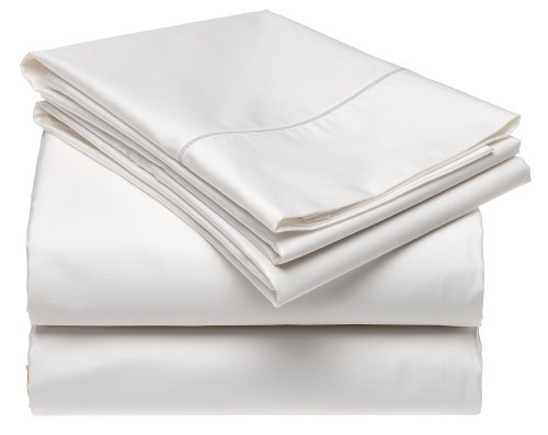 Studio : Elite Home Products Publisher : Elite Home Products Binding : Kitchen Product Description 100-Percent cotton sateen, 600 thread count, 4-piece solid sheet set, fabric is calendared and mercerized for long lasting comfort and quality, flat sheet and 2 pillow cases have a marrow hem treatment, fitted sheet has 16-inch pockets, CK flat 108 by 106, fitted 84 by 72 by 16, 2 std cases are 40 by 20. 0