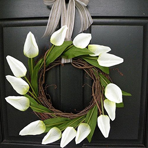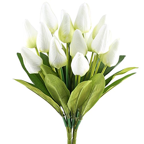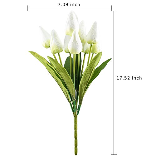 - Arrive Include 2 bundles artificial white tulips, each flowers bouquet have 9pcs white bud flowers heads, length approx 17.52 inch and the flower heads diameter approx 1.5 inch
