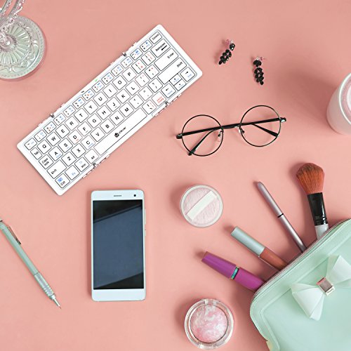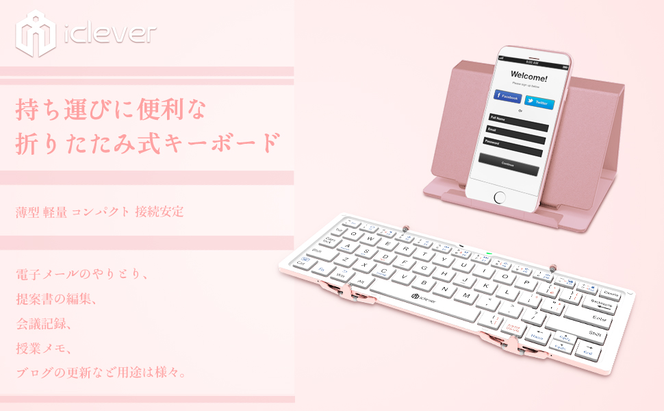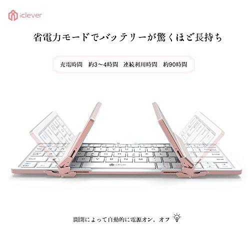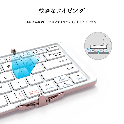 キーボードは二つ折りタイプなので、とてもコンパクトです。折り畳むと、ポケットにすっきり収納可能です。外出にも携帯便利です。折りたたみ式コンパクトサイズ