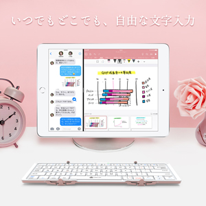 キーボードは二つ折りタイプなので、とてもコンパクトです。折り畳むと、ポケットにすっきり収納可能です。外出にも携帯便利です。