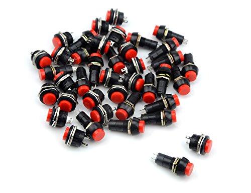 WGCD 40 PCS Momentary SPST NO Push Button Switch with Red Cap AC 6A/125V 3A/250V and 1.5A/250V 3A/125V