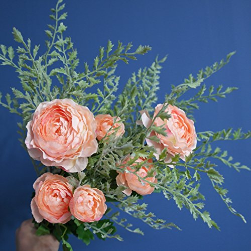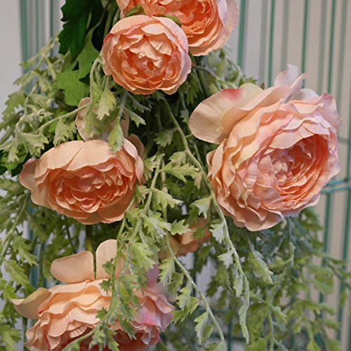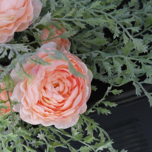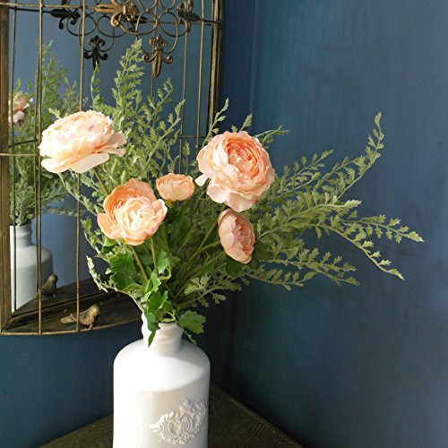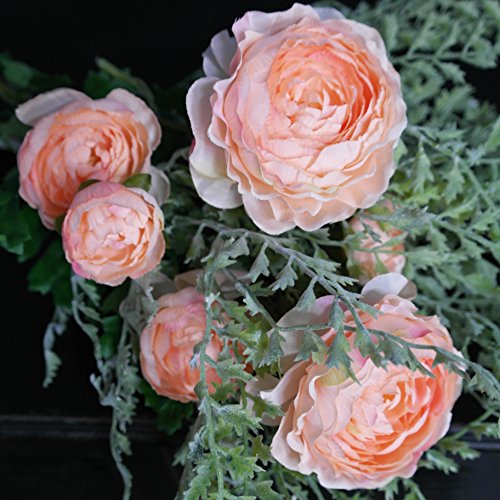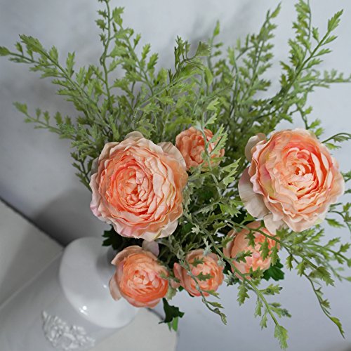 Le Petit Maison Artificial Flower Ranunculus (Coral) & Artificial Plants Boston (Light Green) Bouquet for Home Garden Wedding Office DIY Decor