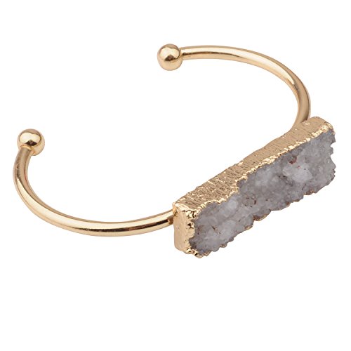 -. Binding : Jewelry -. Brand : Joya Gift -. Color : White -. Department : womens -. Feature : Handcrafted.antiqued gold tone plated brass,adorned with Natural Gemstone Crystals. / Unparalleled design,Nice and durable gift to the one your love / Items that are handmade may vary in size, shape and color / Adjustable Cuff / Natural gemstone crystals size:12*40mm -. Label : JoyaGift -. Manufacturer : JoyaGift -. Model : SB1047G -. MPN : SB1004 -. PartNumber : SB1004 -. ProductGroup : Jewelry -. ProductTypeName : FASHIONNECKLACEBRACELETANKLET -. Publisher : JoyaGift -. Studio : JoyaGift -. Title : Joyagift Druzy Cuboid Natural Gemstone Crystal Cluster Gold Copper Cuff Bracelet