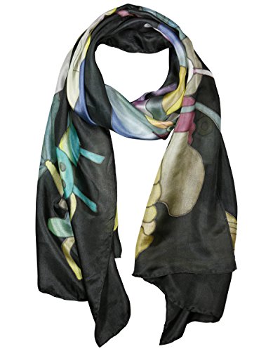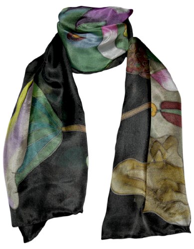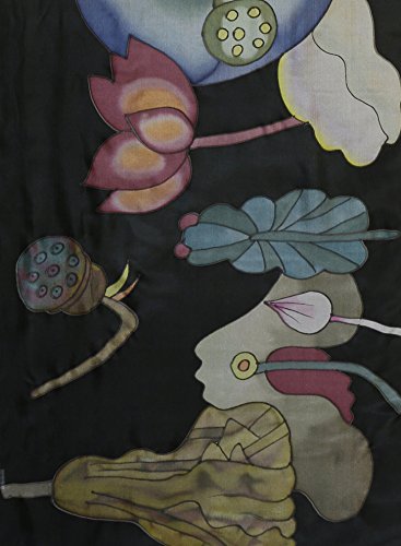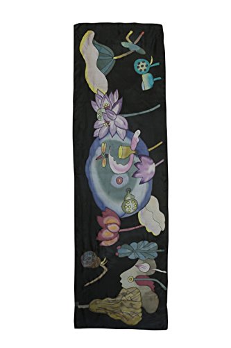 -. Feature : A unique piece of textile art. The perfect accent scarf. / Lotus motif, skillfully handpainted and stitched / Handmade by 2nd generation silk painters / Colours will not run or fade / Measures 55" by 16.5" (140 x 42cm)