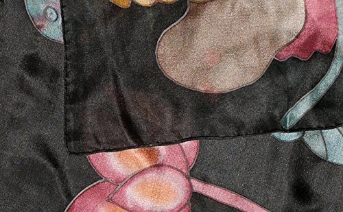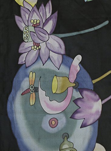 -. Title : Hand-Painted 100% Silk Scarf - Lotus Flowers on Black