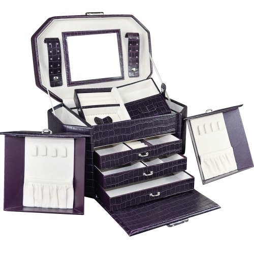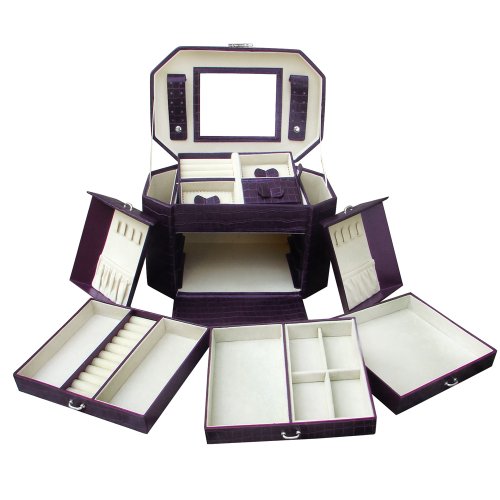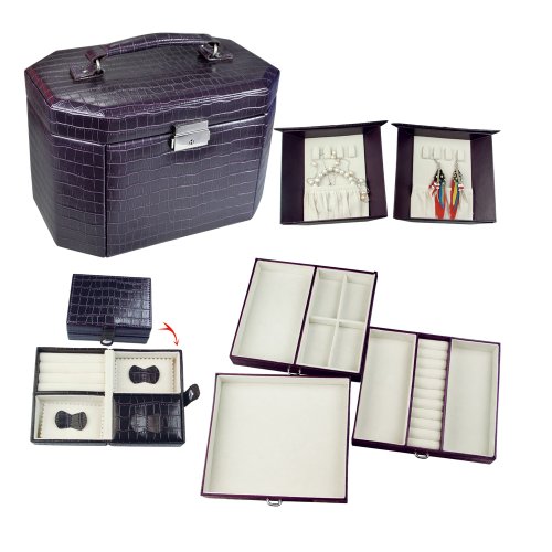 -. Binding : Kitchen -. Brand : Ikee Design -. Department : Womens -. Feature : Handle on the top for easy carrying. 3 Slide out drawers; 17 compartments; 8 necklace hooks; travel case. Lined with beige velvet and finished in crocodile pattern leatherette. Made by durable synthetic leather. -. ProductGroup : Home -. ProductTypeName : HOME -. Title : Ikee Design Luxury Jewelry Leatherette Case. Espresso Brown Crocodile Pattern
