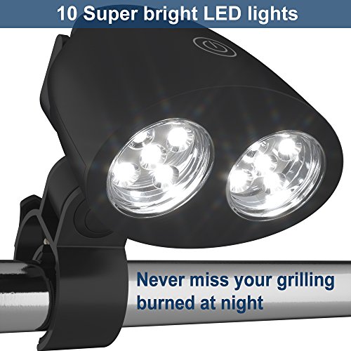 - ENTIRE ILLUMINATING :No need to worry about burnt or undercooked food when you're barbecuing at night, our barbecue grill built with 10 LEDs and 190 degrees horizontal and vertical adjustment for perfect position & illuminating the entire grilling surface.