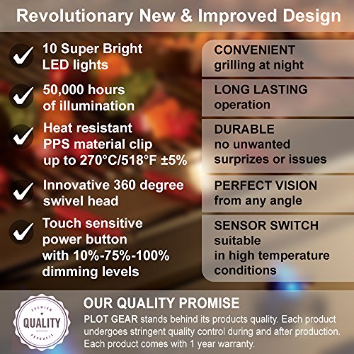 Bright barbecue grill light - 100% waterproof – Ultra bright LED – Easy to set up – durable and heat resistant – with a sensitive touch switch – best for outdoor and indoor BBQ – PLOT GEAR