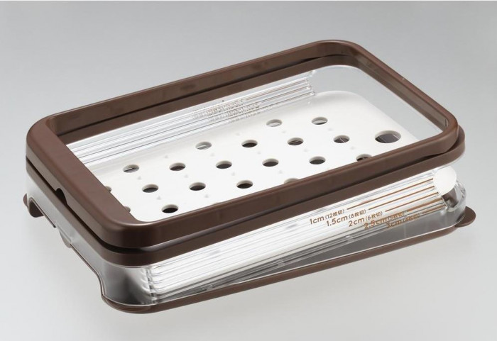 | 素材・材質 | 底皿・安全カード・厚み調節板/ABS樹脂(耐熱温度80度、耐冷温度-30度) 本体枠/スチロール樹脂(耐熱温度70度、耐冷温度-30度) ナイフあて/ポリプロピレン(耐熱温度120度、耐冷温度-20度) |