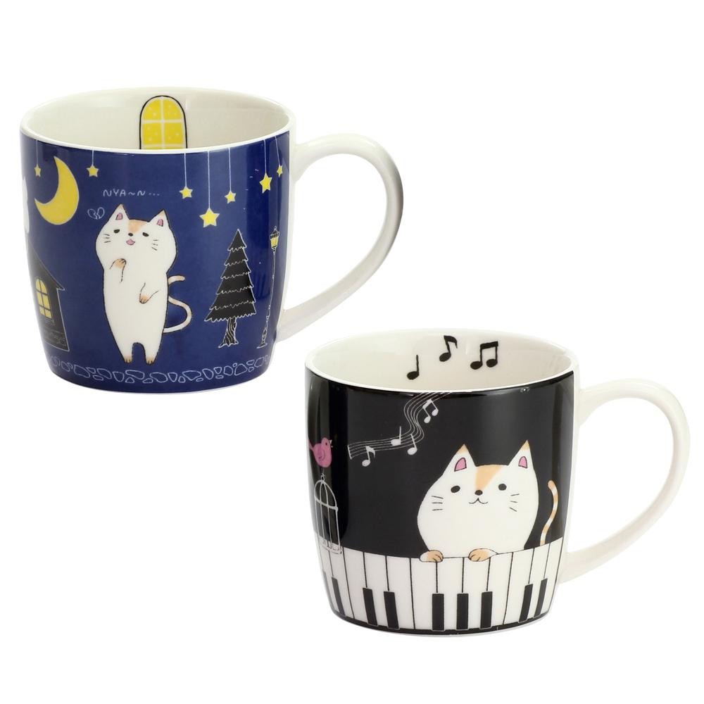キュートな猫のイラストが描かれたペアマグカップ。