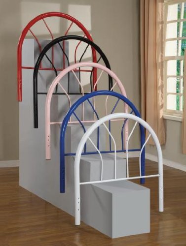 Studio : Hollywood Home Publisher : Hollywood Home Product Description This twin bed offers a calming simplicity with gracious curves. The two inch metal tubing of the headboard, footboard, and frame is bathed in your choice of black, blue, red, white, and pink high gloss finishes. To accommodate your personal style, this piece is also available as a headboard only. Create an inviting and relaxed look in your child's bedroom with this twin metal bed. 0