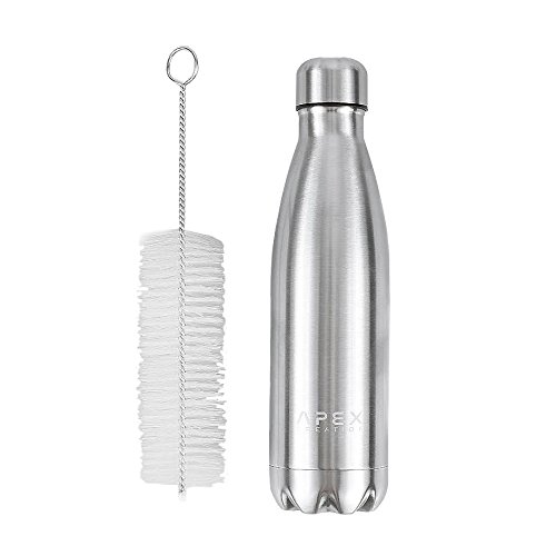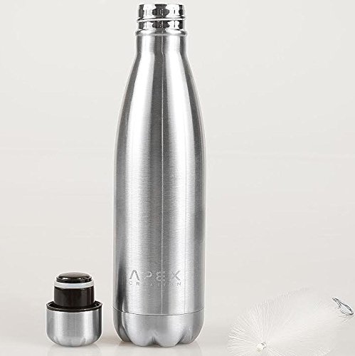 Stainless Steel Water Bottle By APEX CREATION - 17oz Double Wall - Vacuum Insulated - Includes Bonus Cleaning Brush - Ideal for Outdoors, Sports, Camping, Hiking, Cycling, School and Work