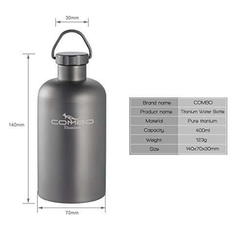 - Capacity: 400 ml ● Weight: 4.3 oz /123g ● Dimensions: 5.5 × 2.75 in/140 × 70 mm.Combo Titanium Sport Bottle is made of premium pure titanium. It is odorless, non-toxic and dishwasher safe.