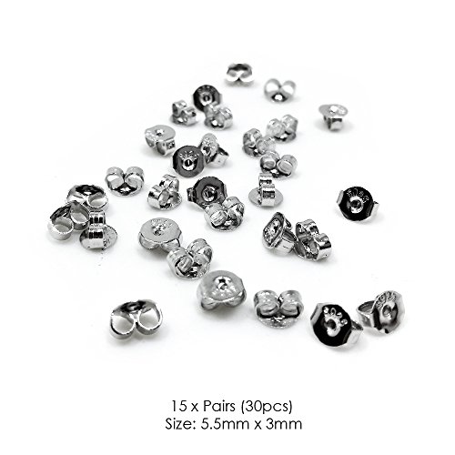 LANMPU 15x Paar (30) Sterling Silber Schmetterling Ohrring Rucken Scrolls Push Fit 925(5,5mm x 3mm)