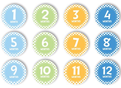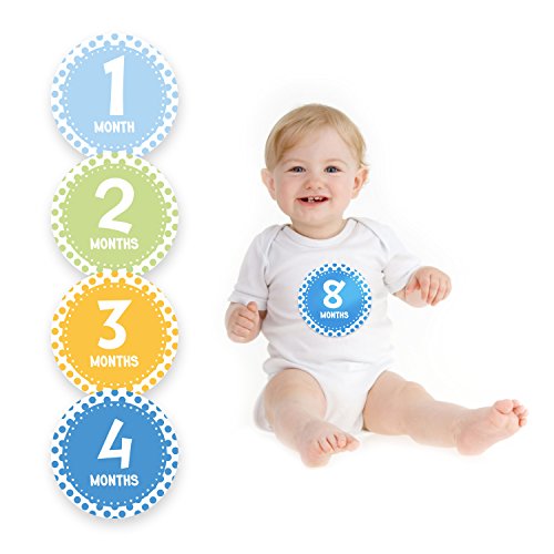 Tiny Ideas First Year Monthly Milestone Photo Sharing Baby Belly Stickers, 1-12 Months, Blue