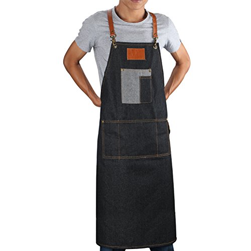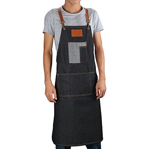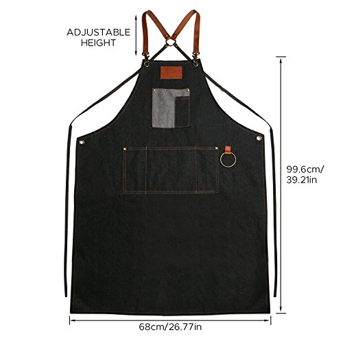 A generous 39 in. length and 26 in. width ensure that the denim apron provides complete coverage. Adjustable denim x-back straps for maximum comfort and fit.