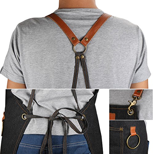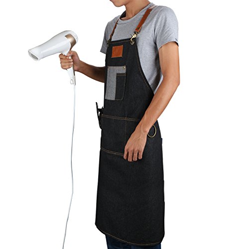 Plus Size Craftsman Jean Protective Work Apron Denim Art Apron for Salon Barber Hairdressers Vendor Apron BBQ Gril Housewife Apron Home Depot Apron with Pockets Cobbler Aprons for Women and Men
