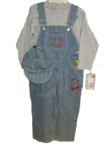 -. Title : Boys 2T/3T/4T Indigo Denim / Stripe Denim Embrodiery Overall 2-PC Set