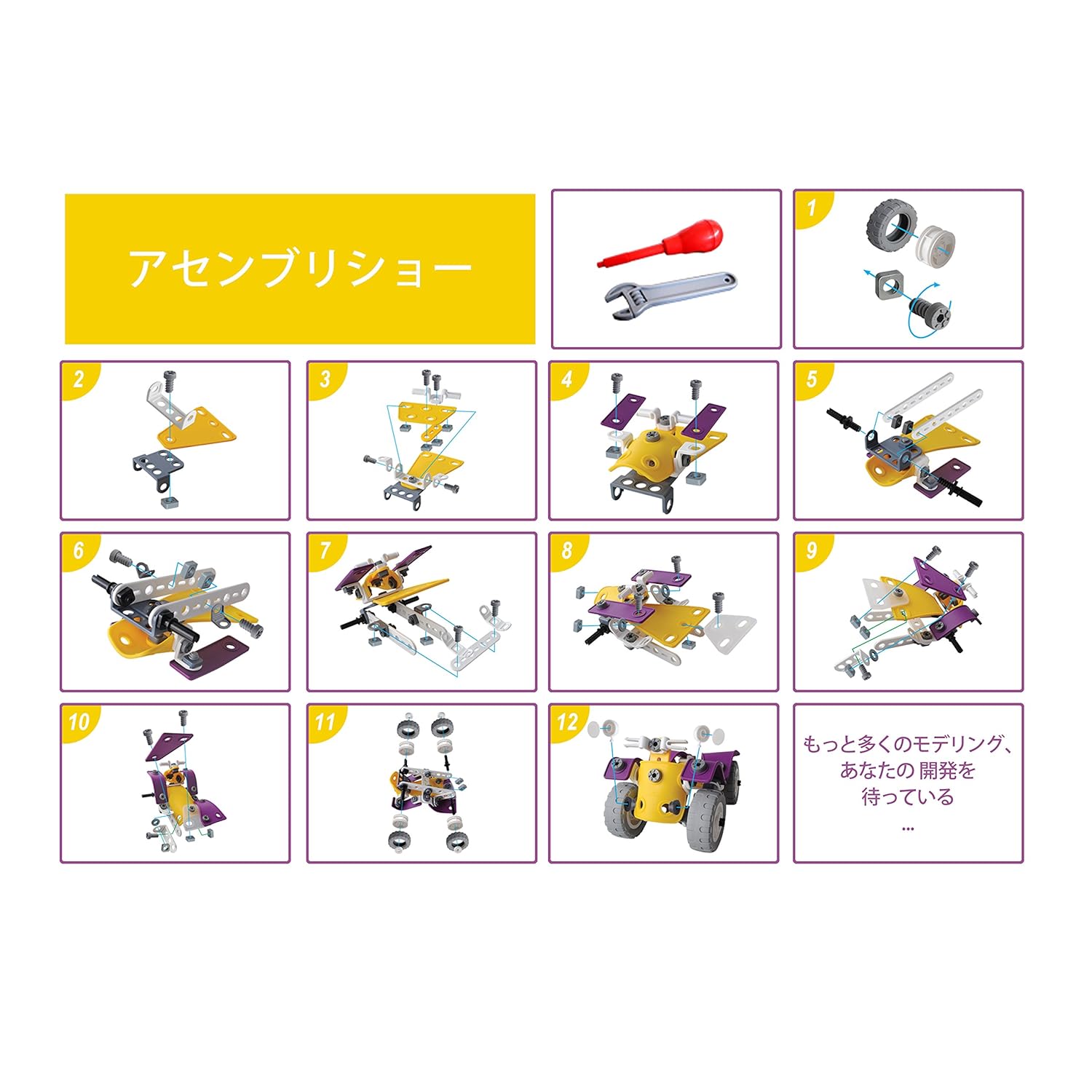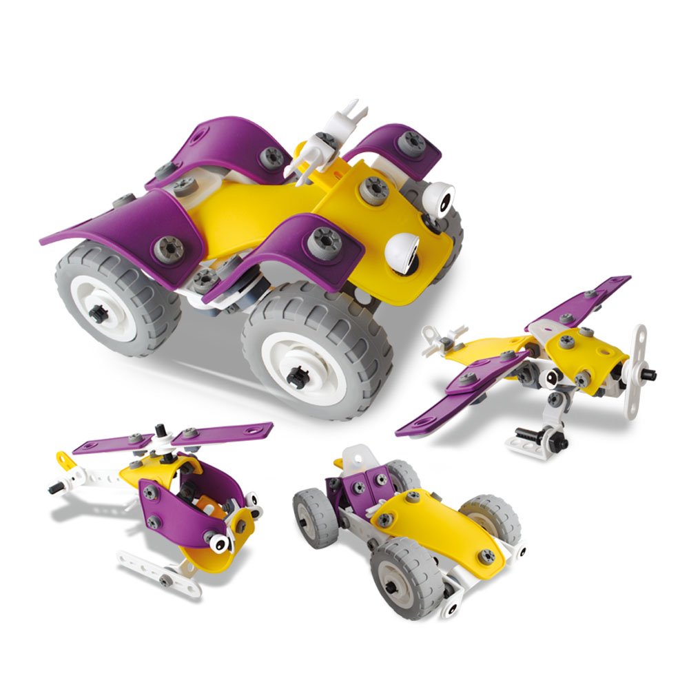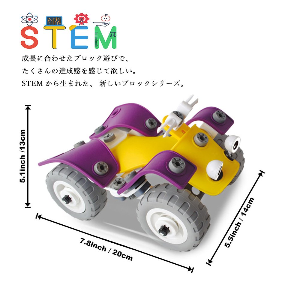 組み立てを楽しもう:本ねじ止めブロックでは、レースカー/オフロードバイク/ヘリコプター/戦闘機等の3Dモデルを4種類以上作れます。組み立て、完成させる喜びと同時に、想像力、デザイン力、理解力が養われる知的教育玩具です。子供から大人まで飽きることなく楽しめます。
