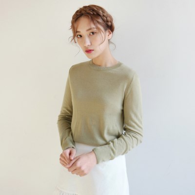 쇄골이 드러나지 않는 라운드 넥 라인이며 봄 시즌 아우터 안에 가볍게 착용하기 좋은 얇은 두께감으로 제작되었습니다. 바디에 슬림하게 핏되는 실루엣으로 다양한 아이템과 매치하기 좋은 제품입니다. 얇은 두께감으로 비침이 있는 점 참고해 주세요!