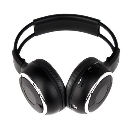-. Feature : Wireless IR headphone to enjoy in car listening without the hassle of cables / Automatic shut off prevents batteries from draining when left on / Headphone fold up for easy compact storage / 3.5mm Auxilary port. Allows plug in use on any iPad/Pod, MP3 devices that uses a 3.5mm auxillary cord (cord not included) / 1PACK Two Channel headphone