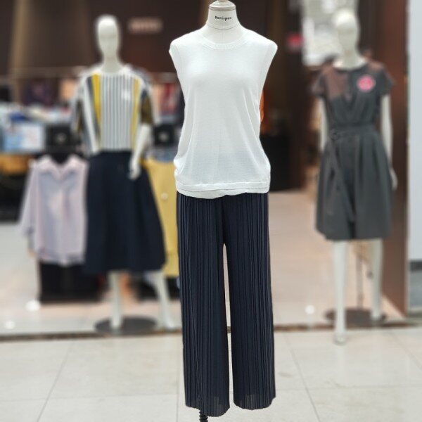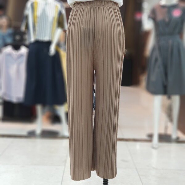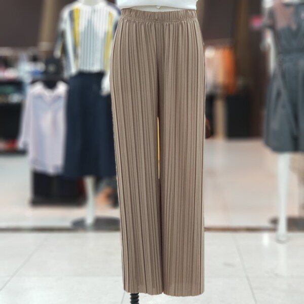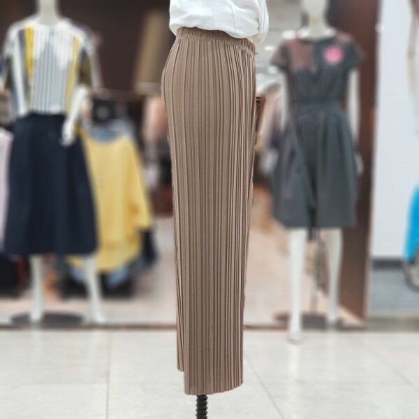 폴리에스터 100%소재의 플리츠팬츠 소개드려요~적당한 와이드핏의 주름바지로 핏감이 슬림하게 떨어집니다.쿨감소재로 여름철에 시원하게 코디하시면 좋습니다.컬러 베이지,챠콜,블랙사이즈 FREE