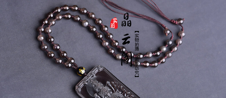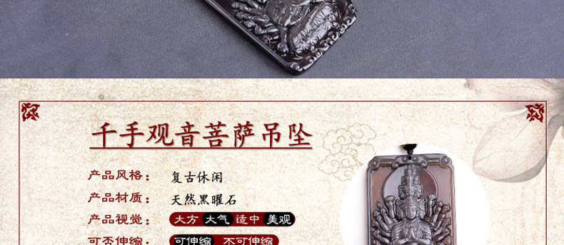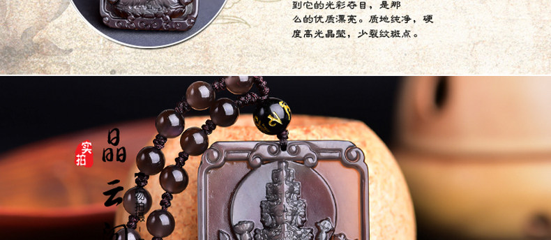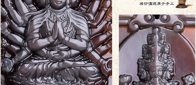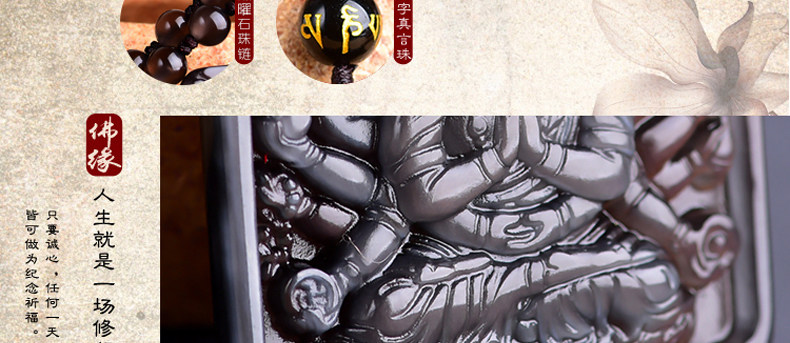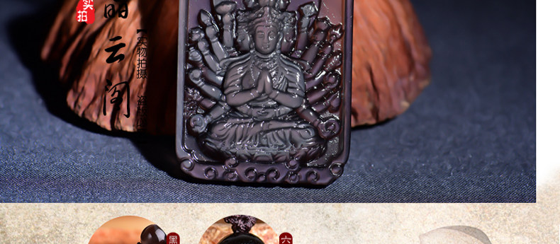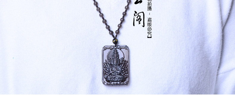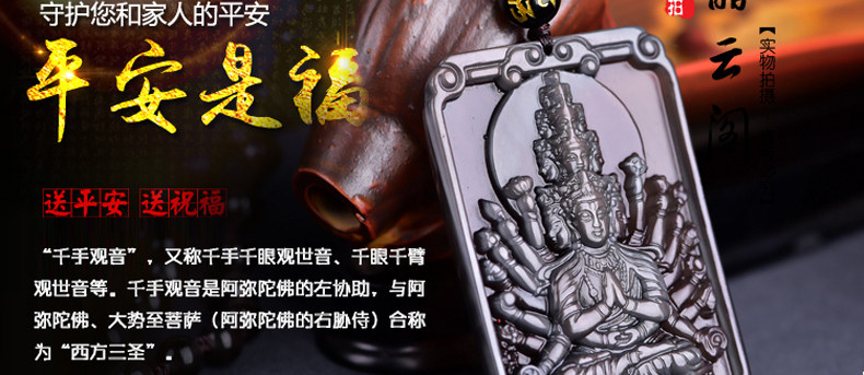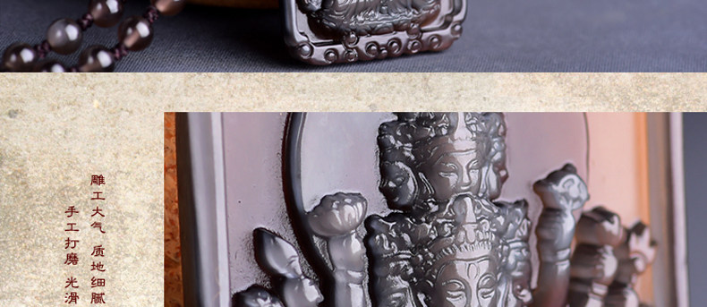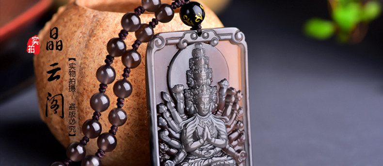 开光 天然彩虹眼黑曜石千手观音菩萨 生肖属鼠本命佛男女款吊坠