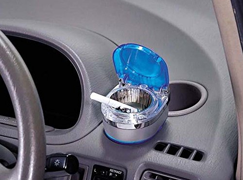 YamaziHD Mini Portable Car Ashtray Blue LED Light for Dashboard Cigar Cigarette (Silver)