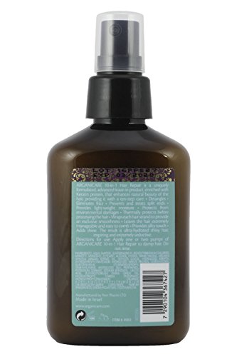 Arganicare's 10-in-1 Hair Repair is a uniquely formulated, advanced leave-in product, enriched with Keratin protein, that enhances the natural beauty of your hair. • Detangles • Eliminates frizz • Prevents and treats split ends • Provides lightweight moisture • Protects from environmental damage • Thermally protects before processing the hair • Wraps each hair strand to provide an exclusive smoothness • Leaves hair extremely manageable and easy to comb • Provides a silky touch • Adds shine. The result is ultra-hydrated shiny hair, inspiring and extremely seductive.Feature