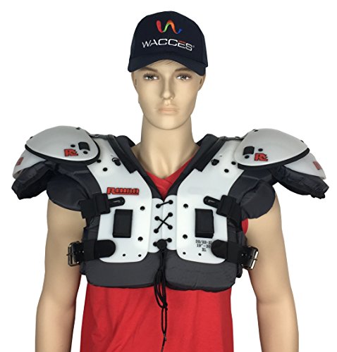 Designed for ultimate player protection without sacrificing mobility. Wacces Rhino Crusher Adult Football Shoulder Pads are designed to disperse energy upon impact, keeping athletes safe and playing with total confidence. The Wacces Shoulder Pads features a lightweight, breathable body that is built specifically for varsity RBs and DBs. FEATURES: