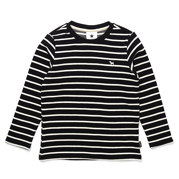 로우분또 저지소재를 활용한 1:3의 새로운 칼라매치를 보여주는 라운드넥의 스트라이프티셔츠입니다.