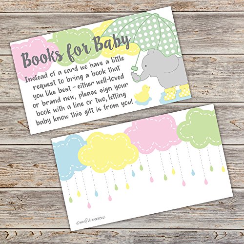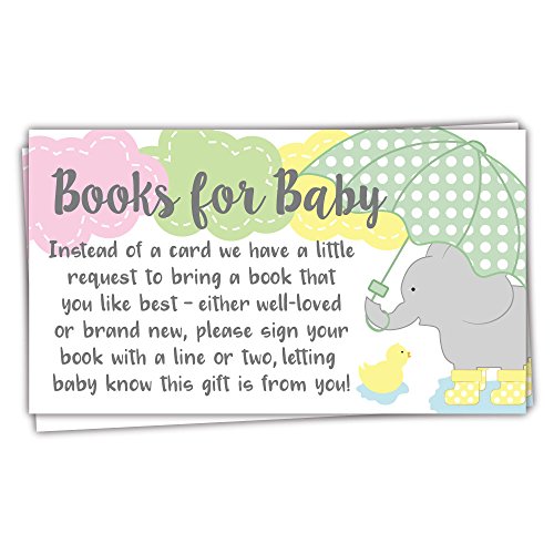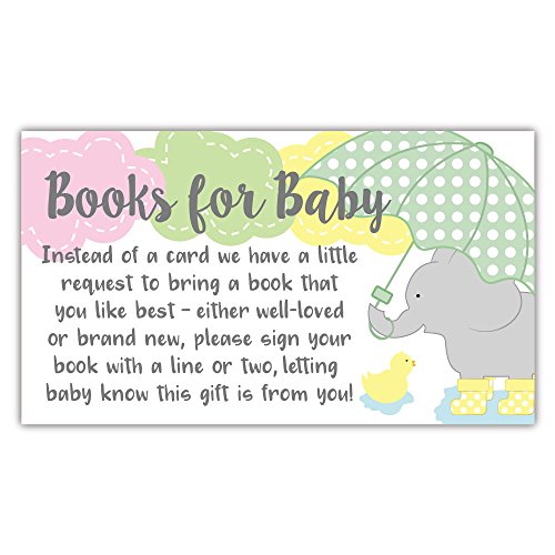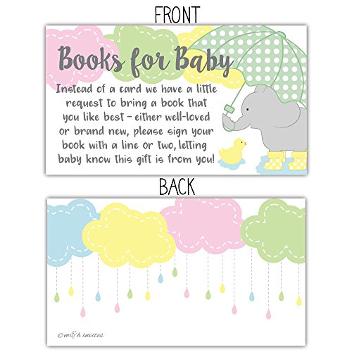 Features an adorable elephant with umbrella, colorful rain clouds and rubber ducky friend - Design on front and back of cards - Professionally printed on heavy weight cardstock