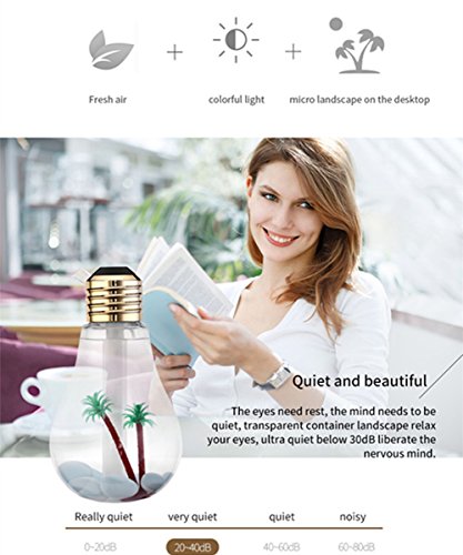 ☆ It's a lovely small air humidifier for pc user. With USB powered outlet any computer USB Port will work. It bring a little color and style to boring desktop work. Very quiet as well