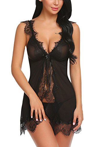 -. Title : Pintimi Women Lingerie Patchwork Sleepwear Lace Babydoll Strap Halter Chemise