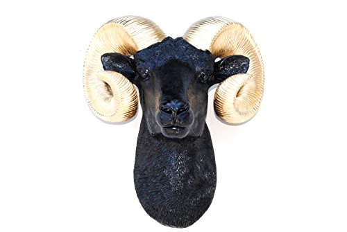 Near and Deer Faux Taxidermy Ram Head with Horns Wall Mount, Black/Gold