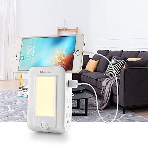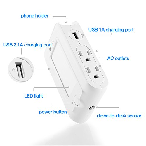 4-IN-1 MULTIFUNCTION: Not only a wall outlet that can charge USB devices, also a LED night light can be served as phone holder. 4-in-1 design, buy one, get four! Space-saving, convenient and cost effective, save your time, save your money.