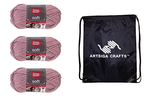 - Bundle Includes 3-Pack of Red Heart Soft Yarn Rose Blush E728-9770 with 1 Artsiga Crafts Project Bag