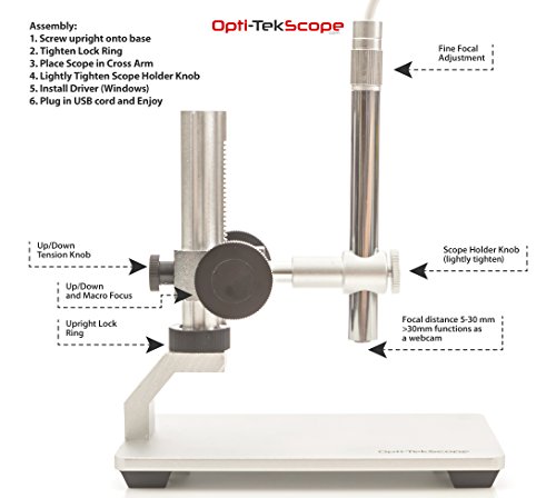 Opti-Tekscope Digital USB Microscope Camera- Advanced CMOS Sensor, True High Definition Macro 200x Zoom Imaging –1600 x 1200 – Video – Superior Industrial Quality Base – 8 LED!