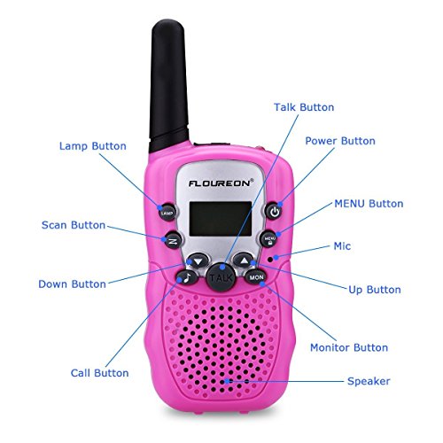 Description This Floureon 2 pack 22 Channel walkie talkies with a generous 3km range (MAX 5km open field) can help you to keep in touch with roaming children or a friend during an outdoor activity or expedition into the wilderness.This 2-way walkie talkies can connect each other in remote area or wild field where phone signal is poor and it has the perfect portable size for outdoor adventures. There's even a convenient belt clip to attach your 2-way radio walkie talkie when not in use and a cool LCD backlit display. Features: -22 channel PMR system auto scan function -Transmitting and receiving icons -Generous range up to 3km (MAX 5km open field) -Good sound quality,Adjustable volume level -Find an open channel fast with auto channel scan -LCD backlit display, battery status indicator -Stay connected to friends and family -Great for supermarkets, shopping centres, festivals and any outdoor activities Specification: Squelch: Auto squelch, CTCSS/DCS Scan: Auto scan 22 CH Alert: Call alert Lock: Channel lock Voice Transmit: PTT/ VOX function Radio Service: FRS/ GMRS Talk Range: 3 miles (MAX 5 miles in open field) Frequency Range: UHF 462-467 MHz Type: Handheld Battery: 4x AAA batteries for each Earphone Jack: 2.5mm/ 0.1inch Package Included: 2 x Walkie Talkies(8*AAA Batteries Not Included) 1 x User's ManualFeature