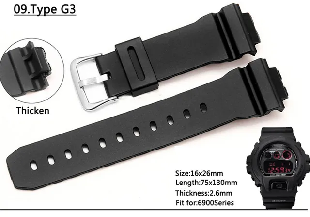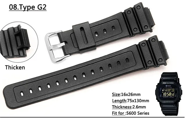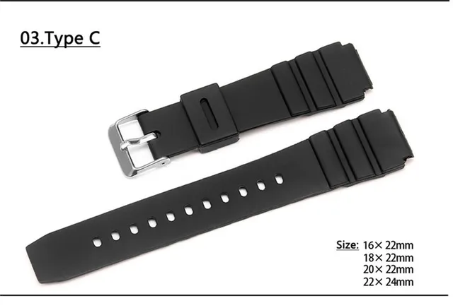 | [해외] 자연 실리콘 고무 스트랩 스테인레스 스틸 핀 버클 casio 시계 교체 전자 손목 밴드 스포츠 + 무료 도구 |