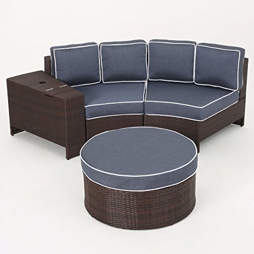 -. Title : Riviera Positano Outdoor Patio Furniture Wicker 4 Piece Semicircular Sectional Sofa Seating Set w/ Waterproof Cushions (Standard Ottoman, Navy Blue)